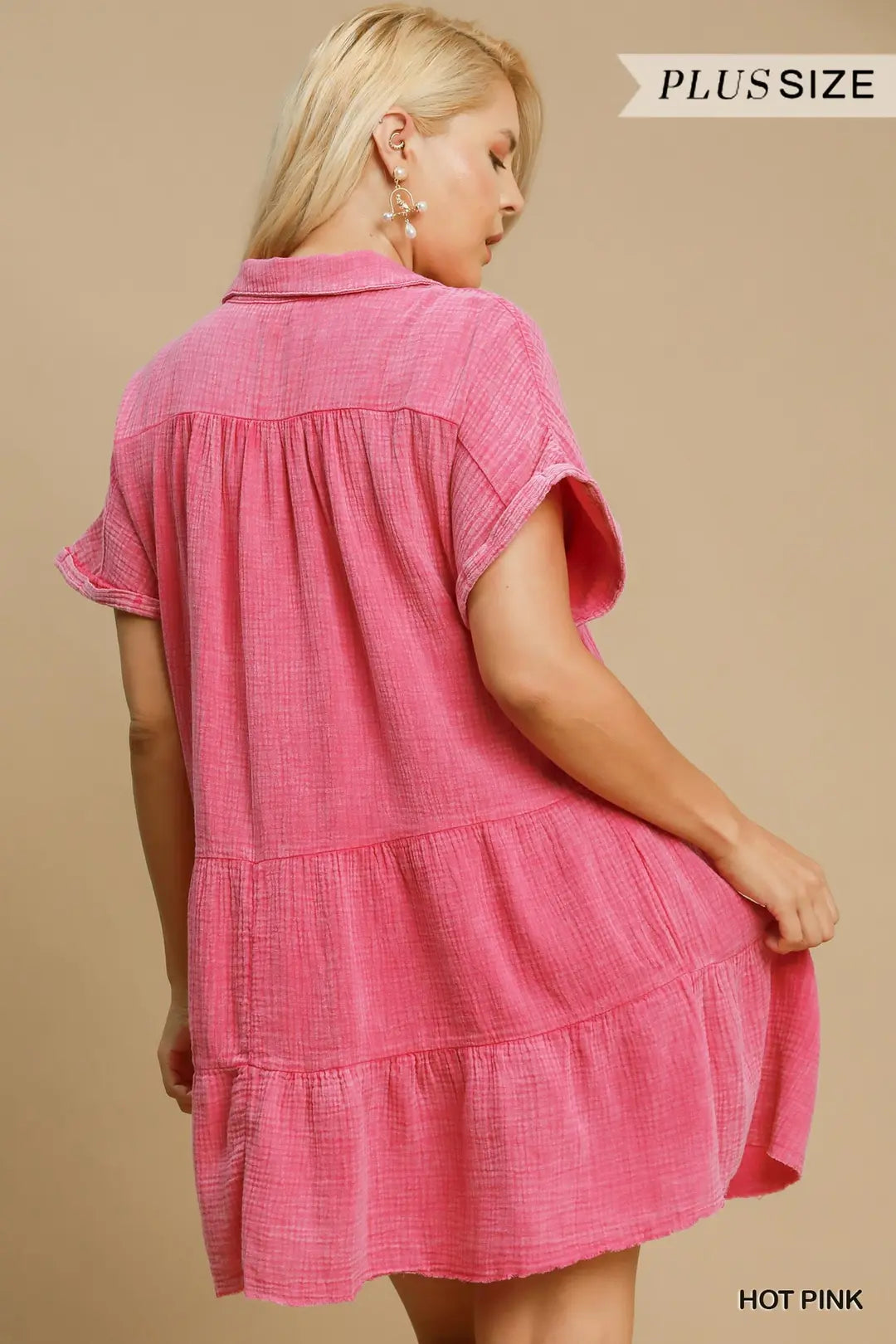 Mineral Wash Tiered Babydoll Dress with Frayed Details