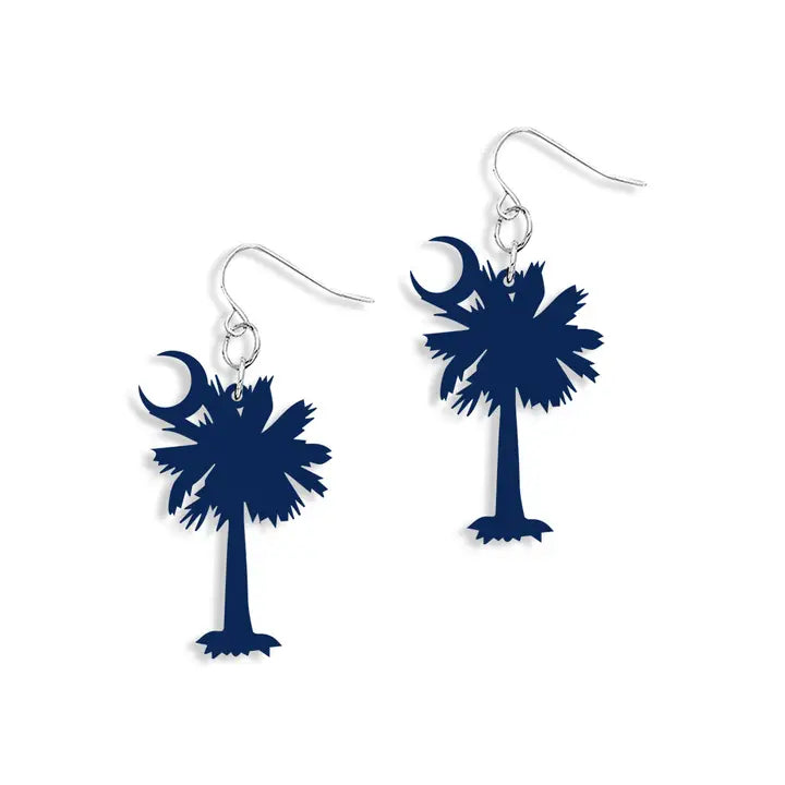 These earrings are a hole in one and are guaranteed compliments on and off of the golf course! 2.5" H Navy Acrylic Silver Toned Metal French Wire Earring Designed and Assembled in the USA