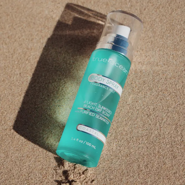 1 BEST SELLER! A best selling Body Spray version of our signature, Coastal scent. Experience a summery, beach fragrance of seaside and surf. With notes of palm leaf and mandarin, True Ocean's Body Spray will be a lasting favorite. You'll love the conditioning, nourishing mist and the refreshing beach vibe it produces. A light spritz provides a summer scent for hours. - 3.4 oz / 100 mL - Made with Ocean Water - Meets FAA liquid requirements to carry-on travel - Made in the USA Experience True Ocean's line of ocean water body care today! Enjoy the beach anywhere you go. Perfect beach gift, souvenir, coastal decor, mother's day gift, father's day gift, birthday gift, unisex fragrances, luxury bath, for spas, resorts boutiques and more!